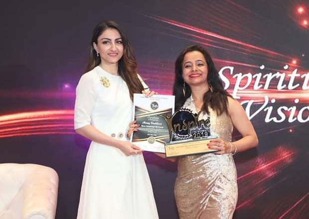 This award was presented by Bollywood celebrity actress Soha Ali Khan Pataudi. Thank you so much my dearest AmmaBhagvan for this recognition