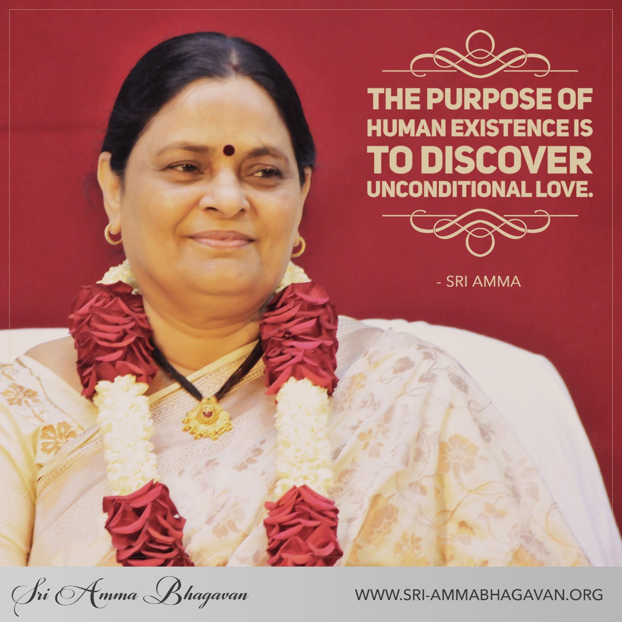 The Moolamantra is a benediction from Sri Bhagavan Himself to all those seeking to end their suffering and to those aspiring to reach a higher spiritual state of bliss. Moolamantra means the source of everything. It has been observed that chanting or meditating on the Moolamantra with bhava (devotion) can actually enable a mystical experience, a divine awakening of the presence of Sri Amma and Bhagavan in the hearts of devotees. The mantra can be chanted in the form of Stuthi (praise) or as Aavahan (invocation) or in the form of Prarthana (prayer) at any time of the day.